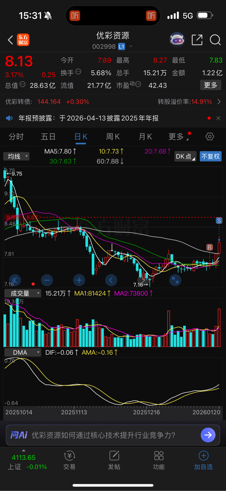 $优彩资源(SZ002998)$ 快速小赚10个点,剩下的各位接力