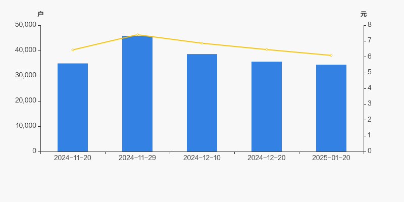 自2024年11月29日以来,公司股东户数连续3期下降,截至目前减幅为24.92%。2024年11月29日至2025年1月20日区间股价下降17.70%。