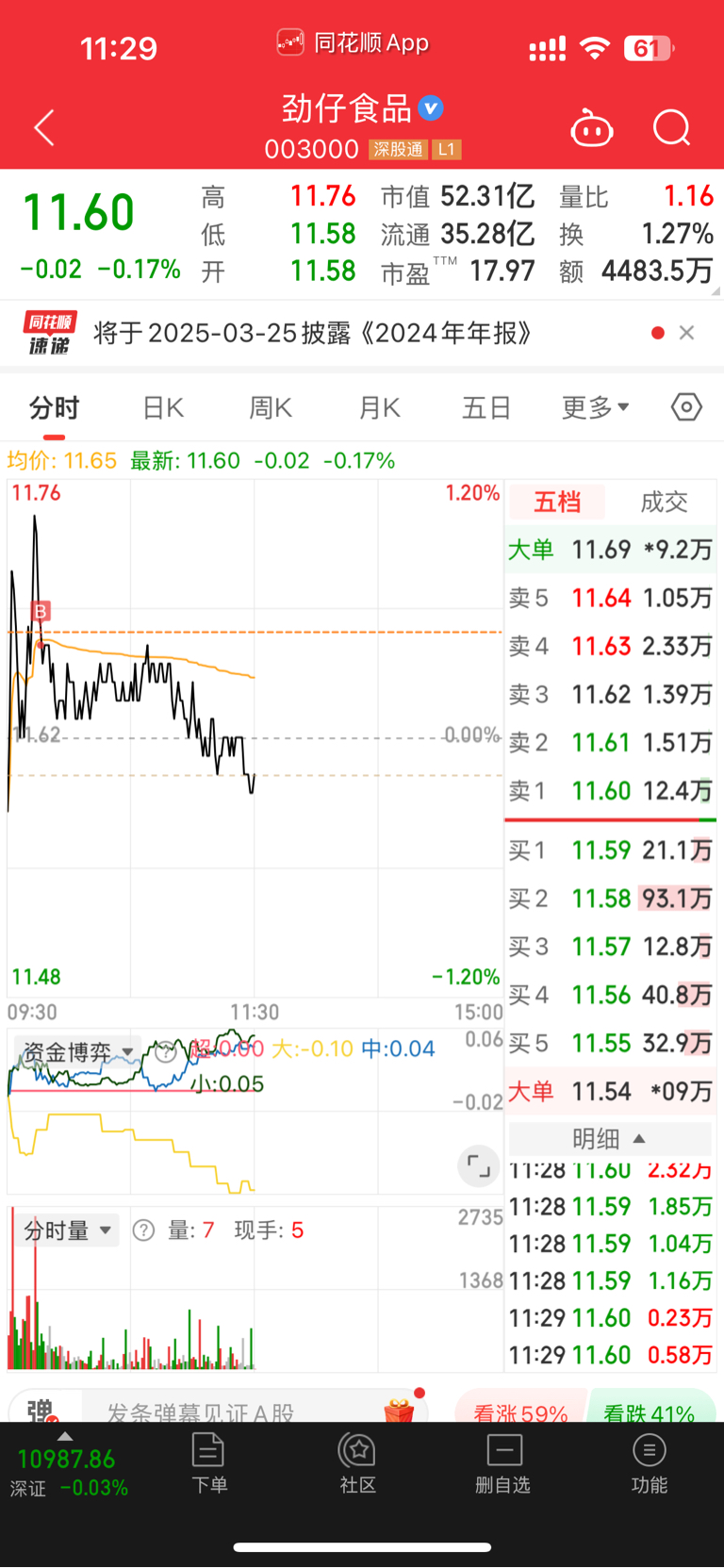 $劲仔食品(SZ003000)$ 是因为我抢了主力筹码?