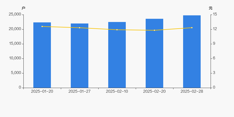 自2025年1月27日以来,公司股东户数连续3期上涨,截至目前增幅为12.68%。2025年1月27日至2025年2月28日区间股价上涨0.08%。