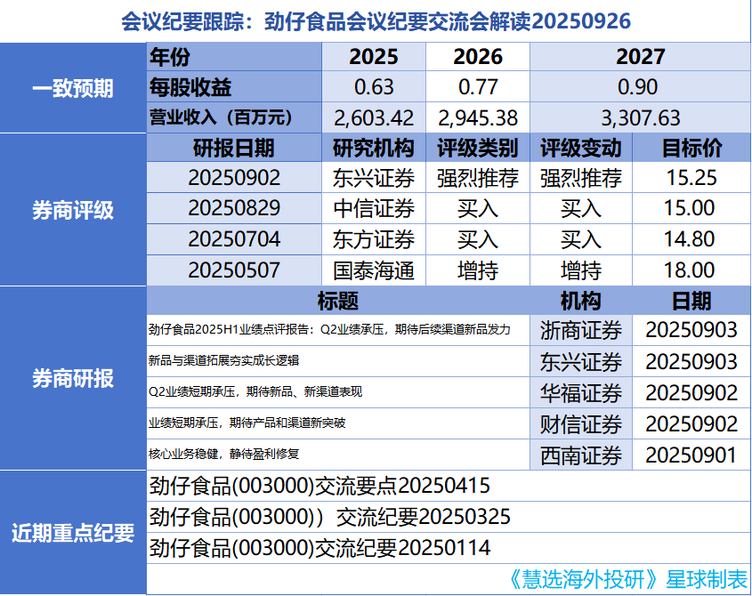 会议纪要跟踪:劲仔食品会议纪要交流会解读20250926