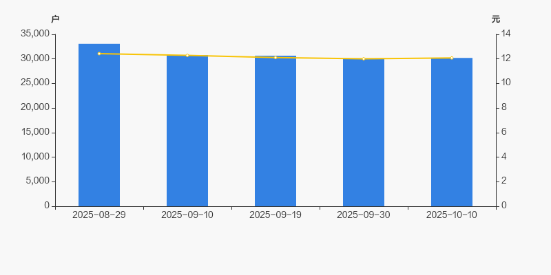 2025年8月29日至今,公司股东户数有所下降,区间跌幅为8.66%。2025年8月29日至2025年10月10日区间股价下降2.78%。