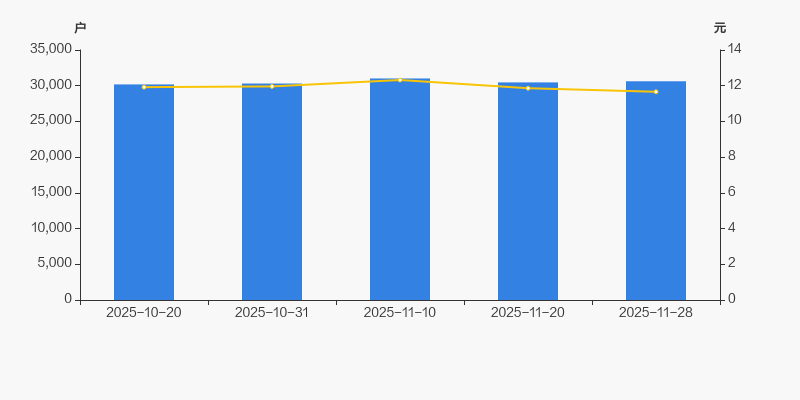2025年10月20日至今,公司股东户数有所增长,区间涨幅为1.46%。2025年10月20日至2025年11月28日区间股价下降2.18%。