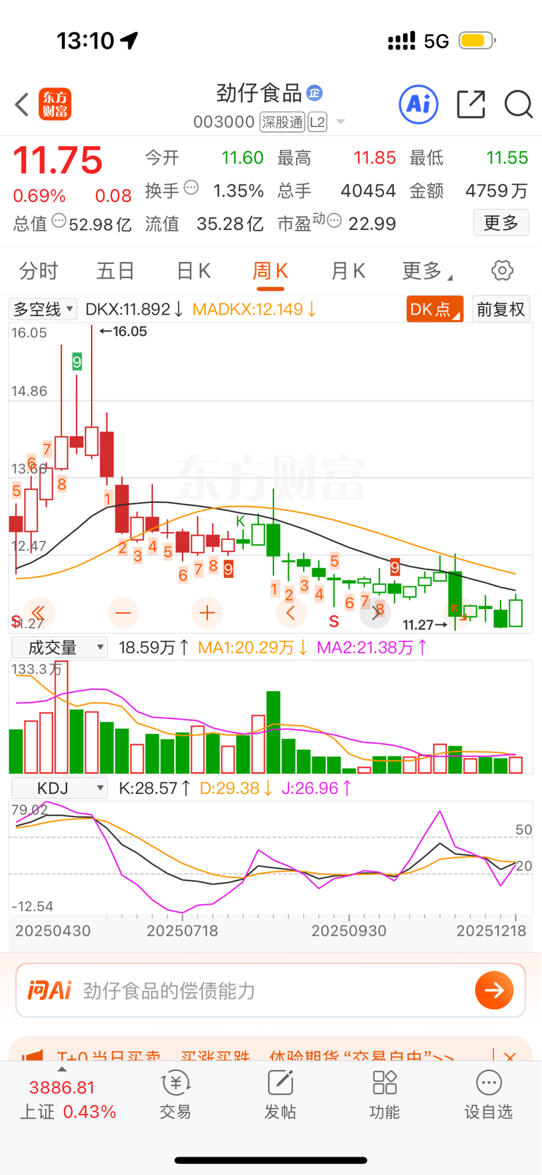 $劲仔食品(SZ003000)$ 委托买盘没有人买