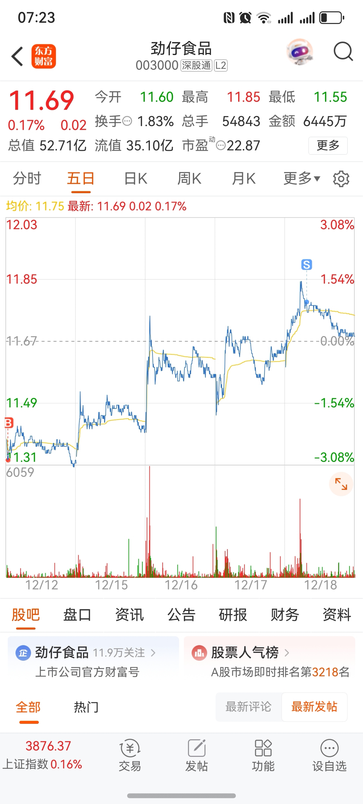 $劲仔食品(SZ003000)$ 先走一步,过两天再来,太墨迹了,才吃了这么丢丢利润
