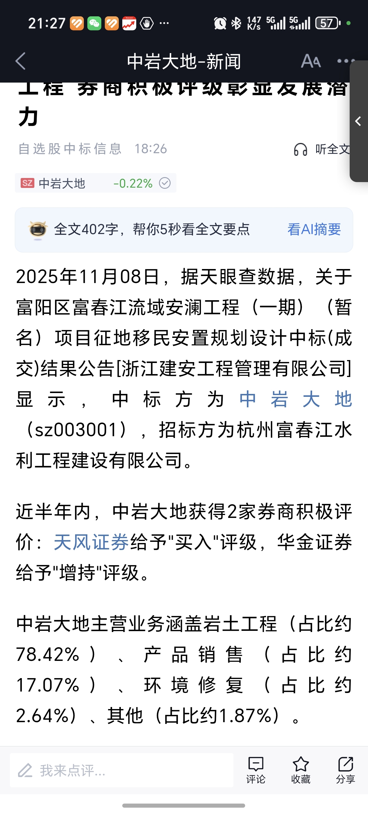 $中岩大地(SZ003001)$ 这是中了多少