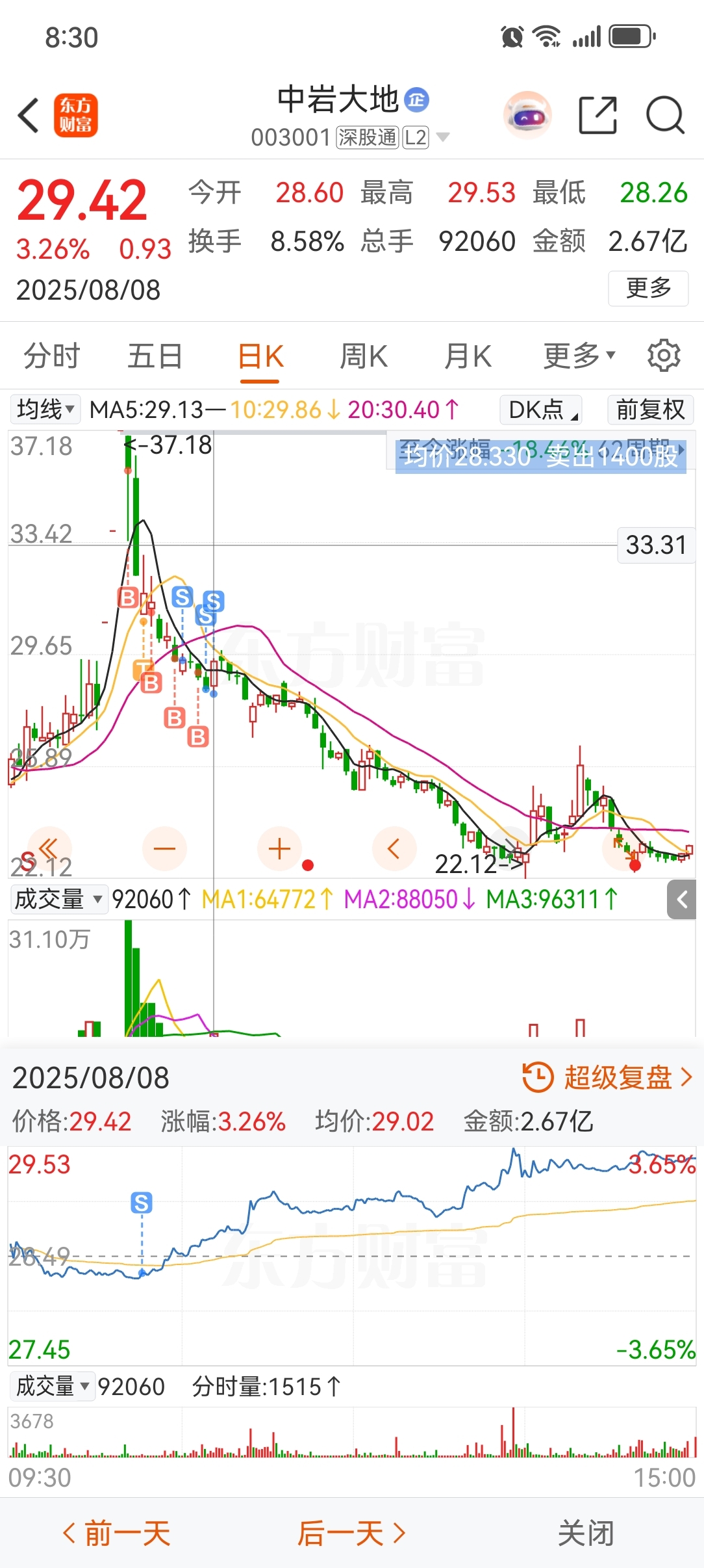 我曾经割在下跌途中的中阳最低点,也有有懊恼,但是却坚定,因为那是我所能承受的底,