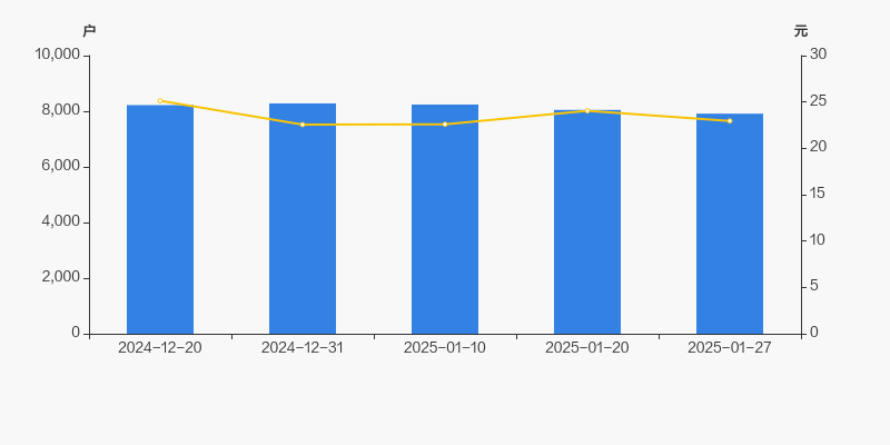 截至2025年1月27日,公司最新总股本为2亿股,其中流通股本为1.83亿股。户均持有流通股数量由上期的2.27万股上升至2.31万股,户均流通市值53.04万元。