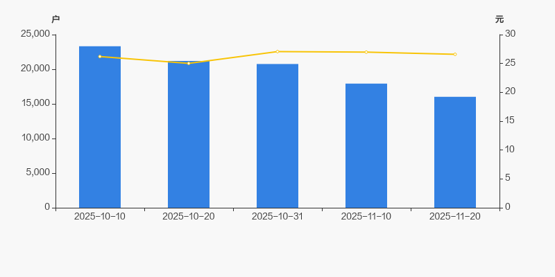 截至2025年11月20日,公司最新总股本为2亿股,其中流通股本为1.83亿股。户均持有流通股数量由上期的1.02万股上升至1.14万股,户均流通市值30.35万元。