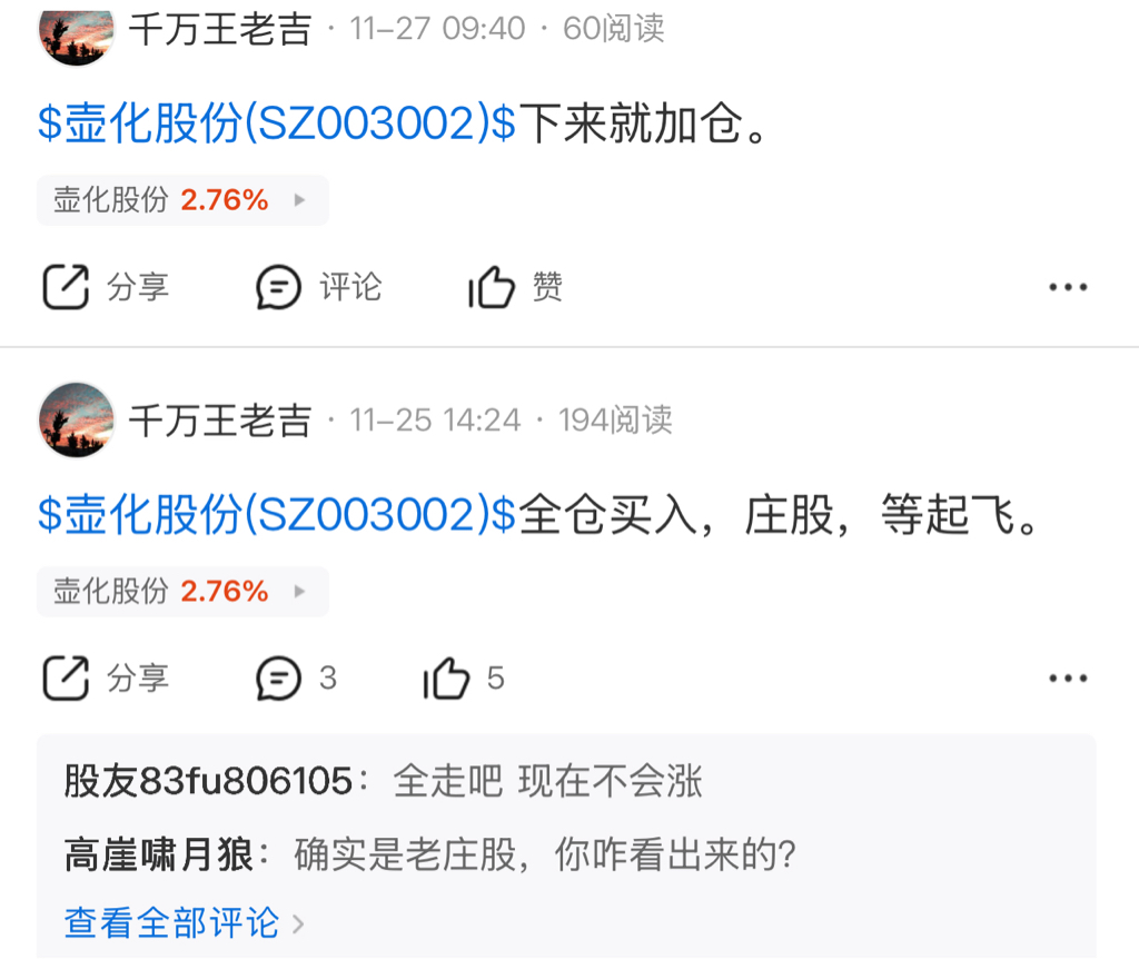 $壶化股份(SZ003002)$ 继续持有就行。11月25日买入的,第一目标是前高。