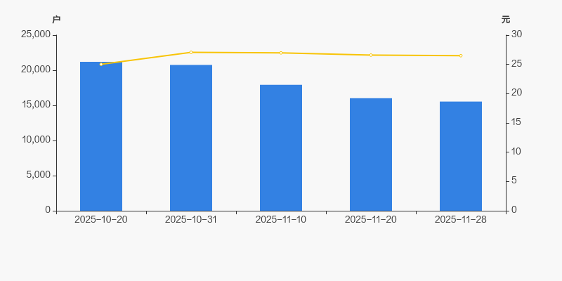 2025年10月20日至今,公司股东户数显著下降,区间跌幅为26.69%。2025年10月20日至2025年11月28日区间股价上涨5.88%。