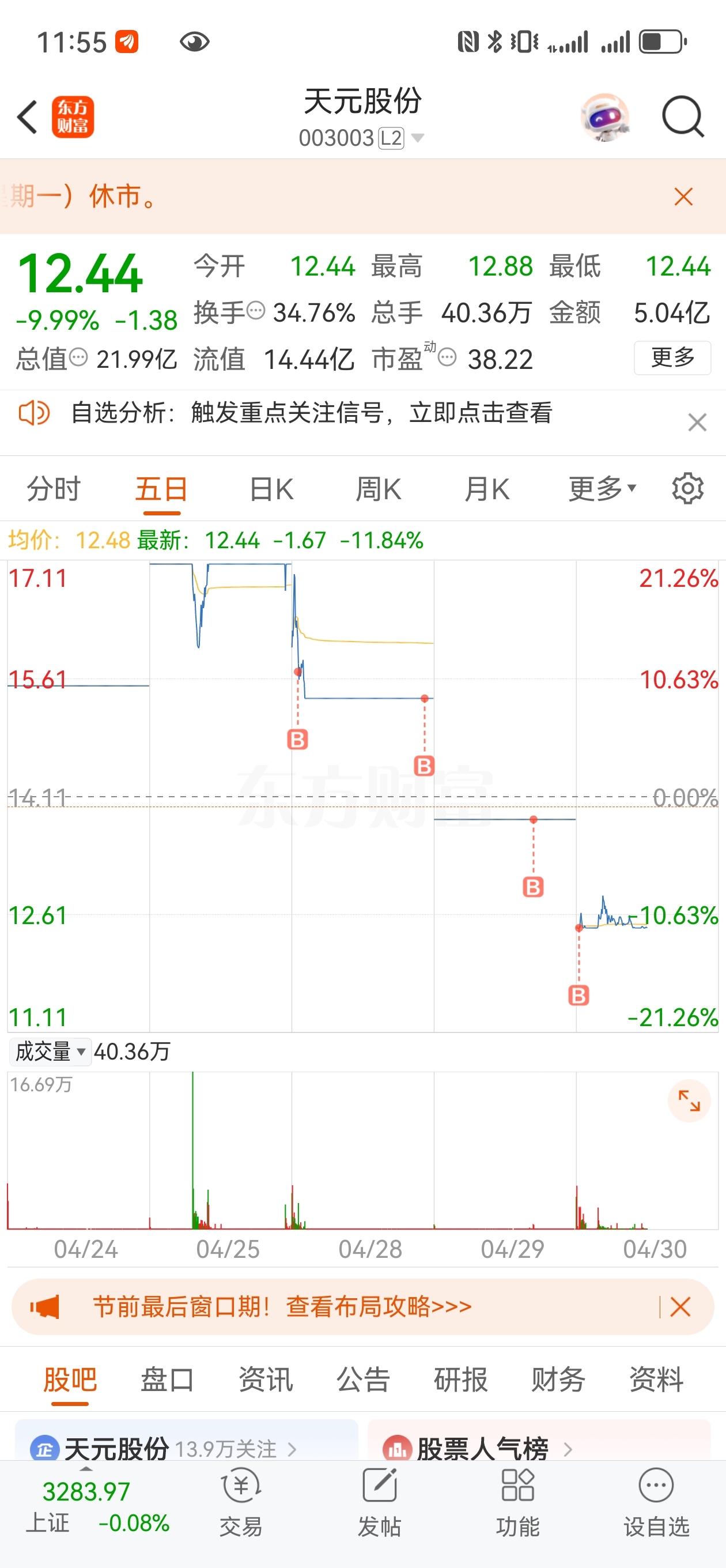 $天元股份(SZ003003)$ 把跌停板战法玩到极致,要不你就有本事退市