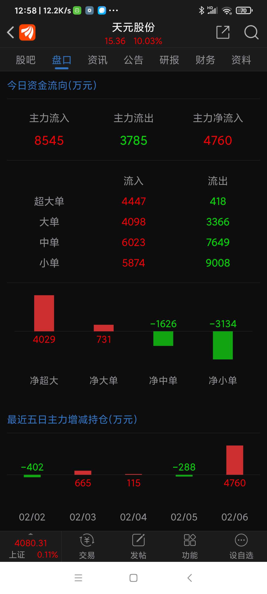 天元股份等五股,今日上午资金净流入一览。