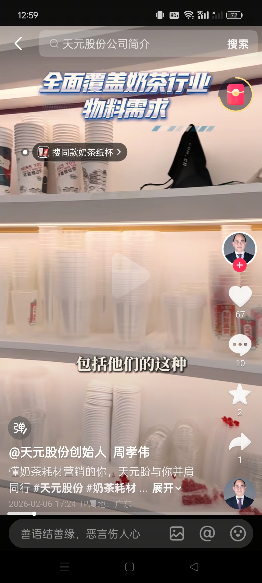 $天元股份(SZ003003)$ 奶茶耗材,周一稳了