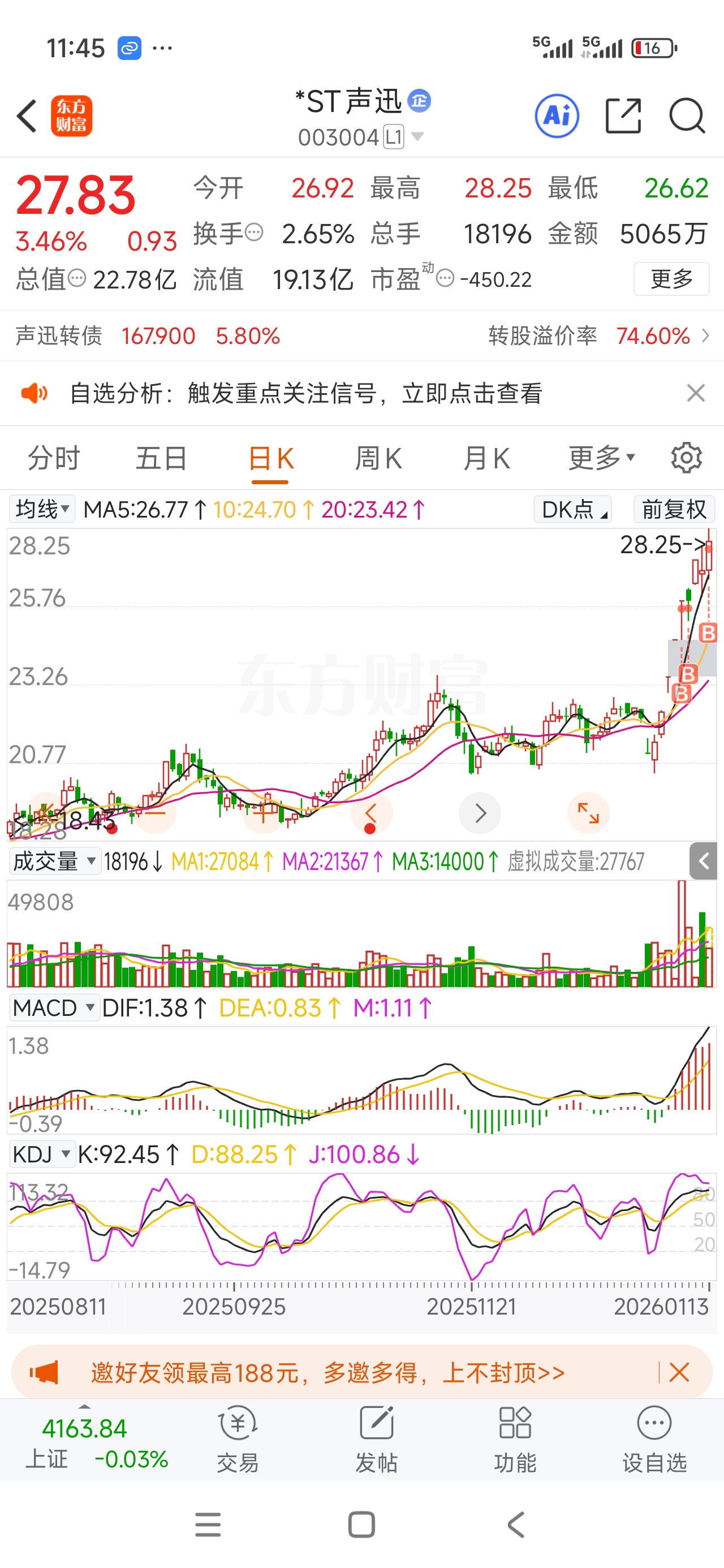 $*ST声迅(SZ003004)$ 每当恐吓我的时候,就是我加仓的时候,吓不跑我的。