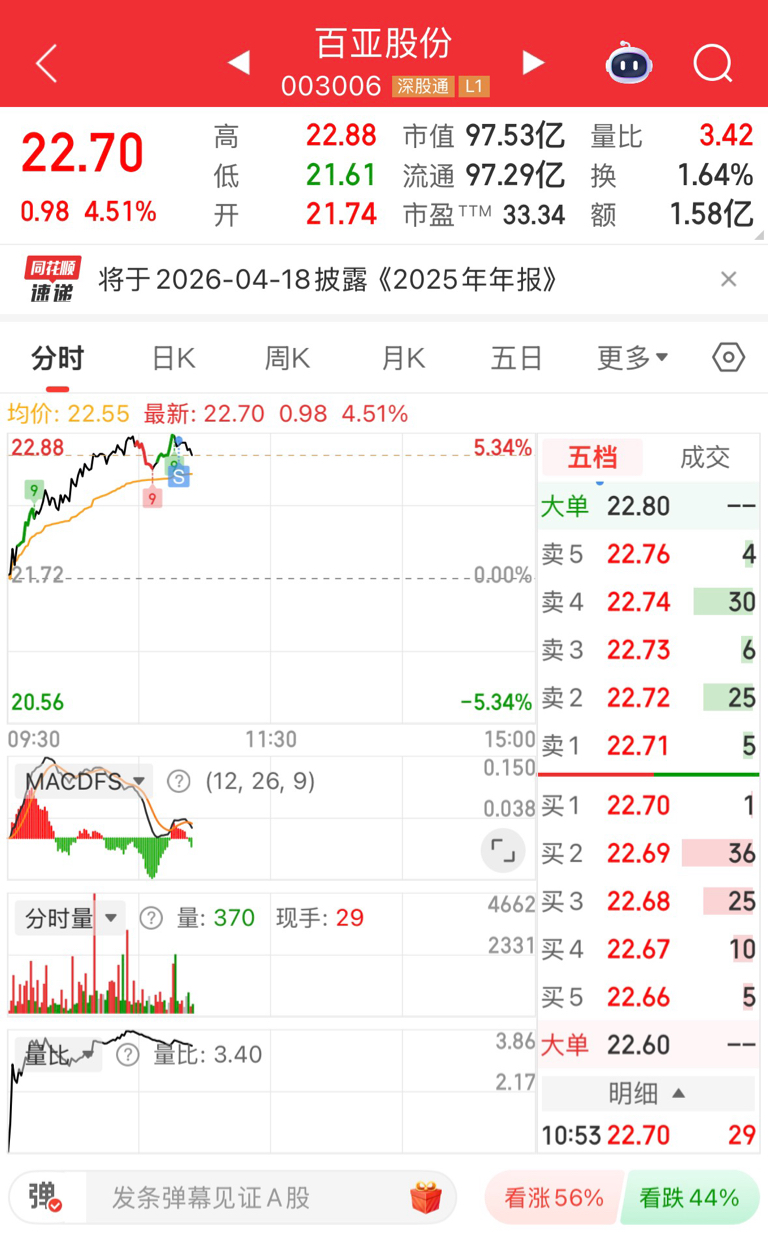 $百亚股份(SZ003006)$ 减仓了