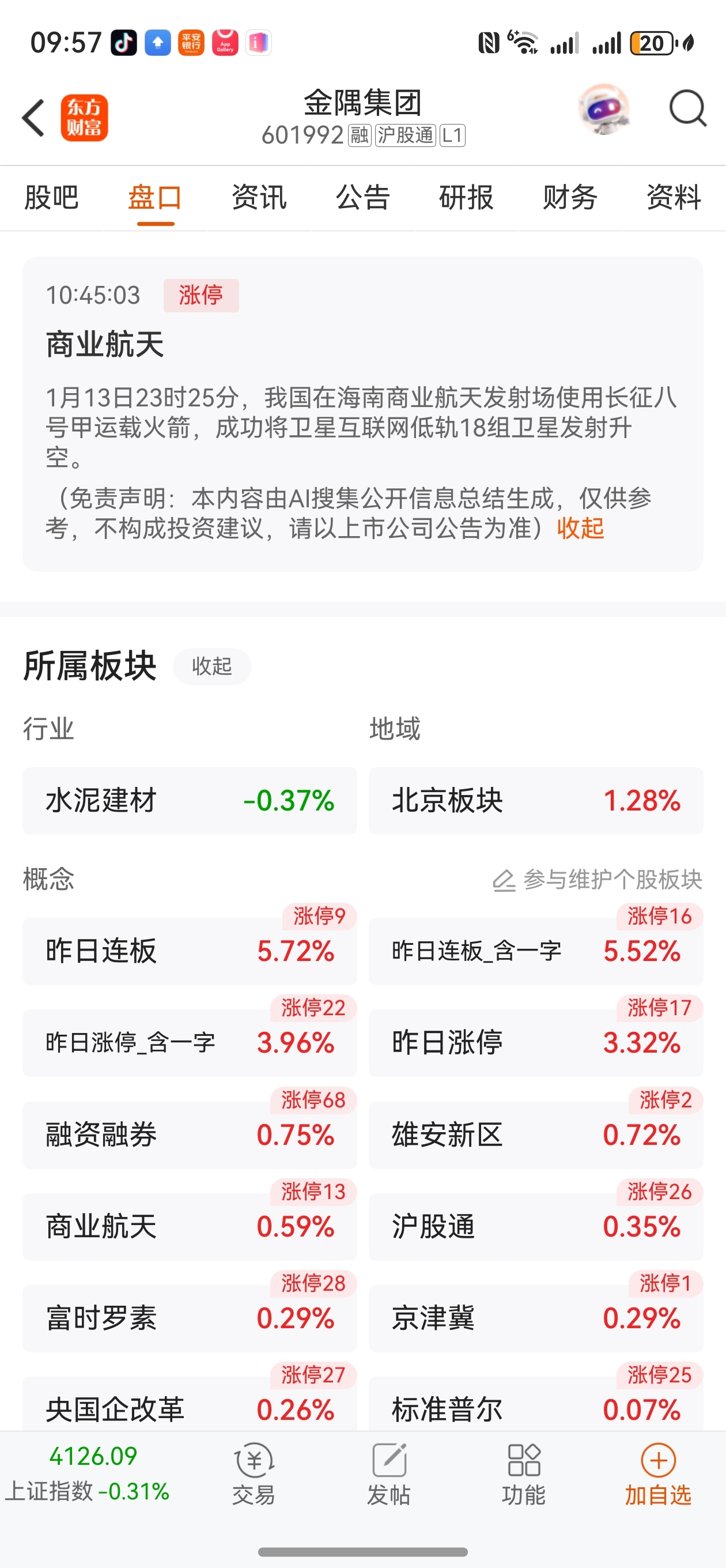 $金隅集团(SH601992)$ 商业航天+水泥建材+央国企+北京
