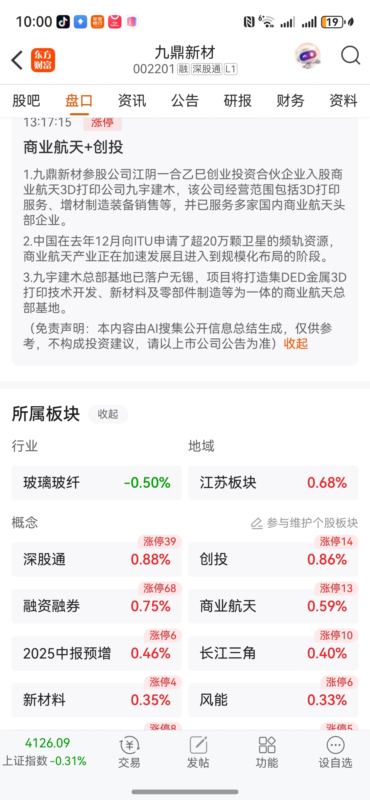 $九鼎新材(SZ002201)$ 商业航天(3D打印)+创投(3D打印,已服务航天龙头)++新材料+江苏