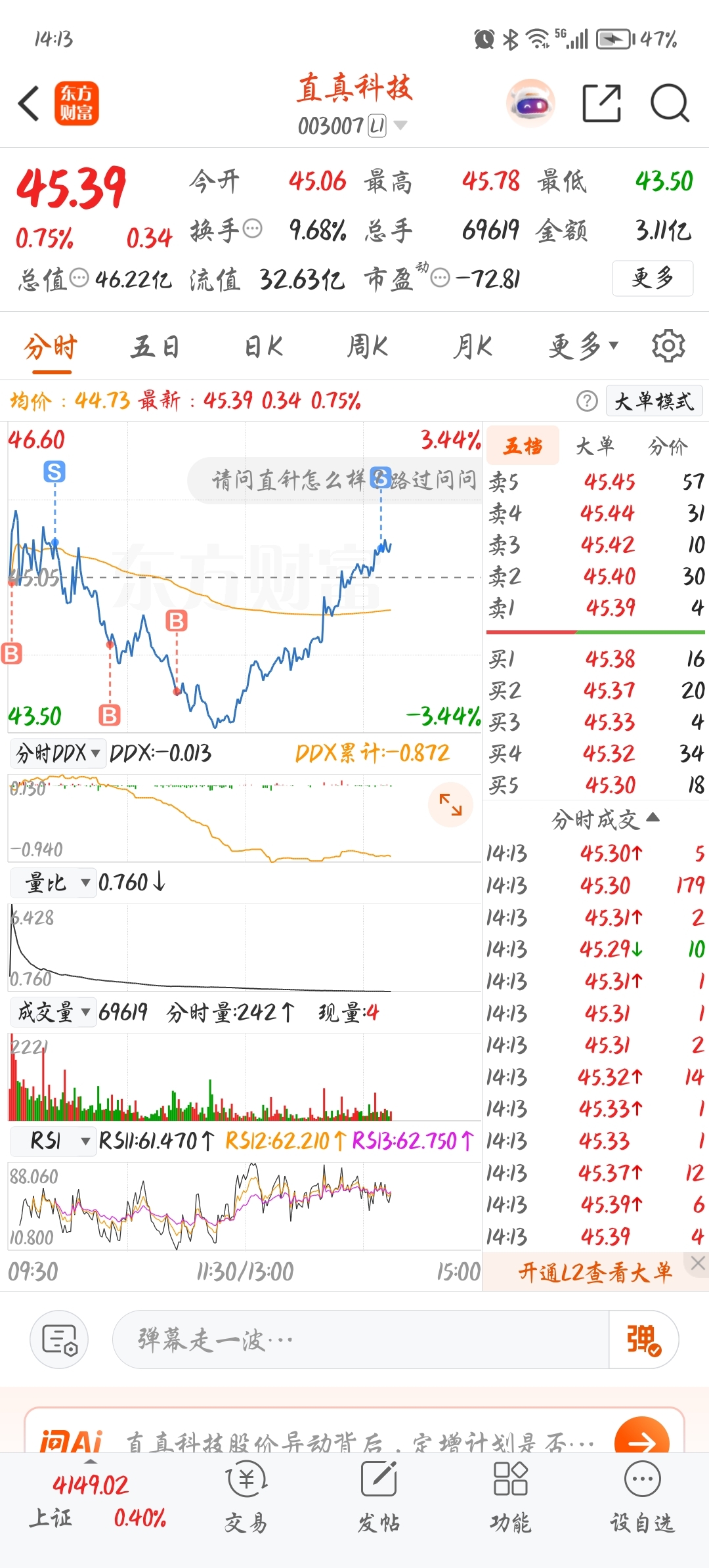 $直真科技(SZ003007)$ 每天T一T健康长久久。