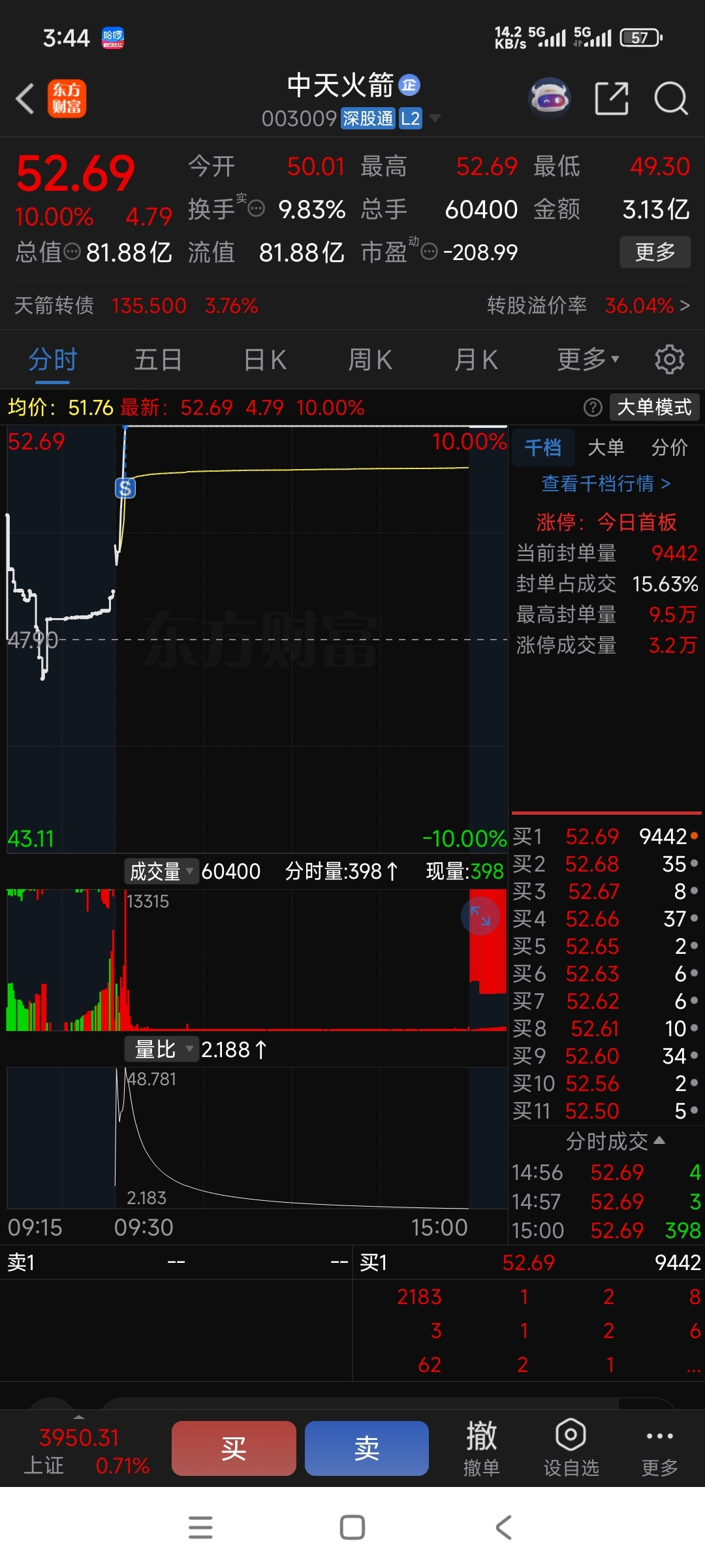 $中天火箭(SZ003009)$ 对还是不对。没挣钱。怕周一水下开。。