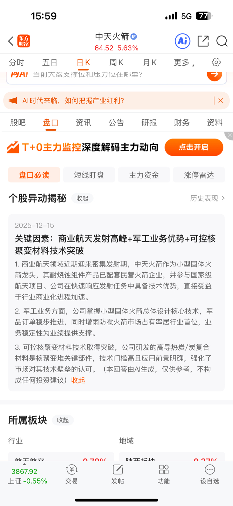 $中天火箭(SZ003009)$ 商业航天+军工+可控核聚变