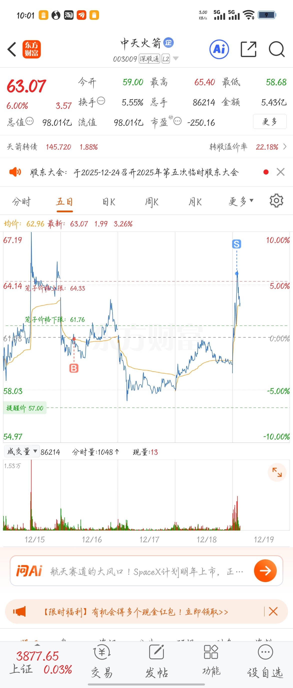 $中天火箭(SZ003009)$ 终于来接我回家了