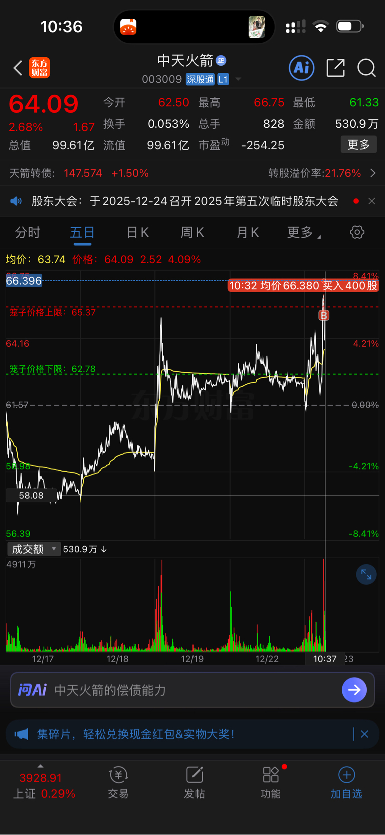 $中天火箭(SZ003009)$ 不是哥们你能让我买到这个点?
