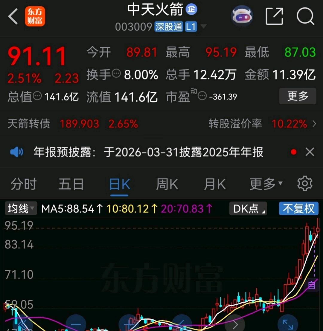 中天火箭今年目标144元。逢低关注分批低吸…