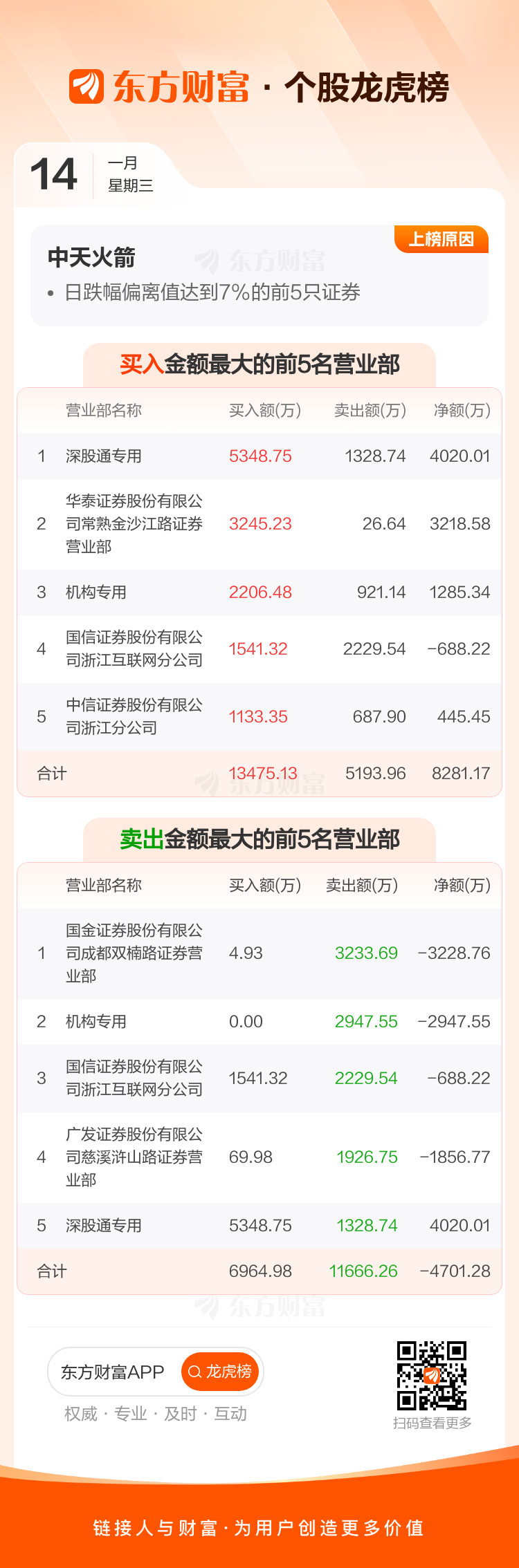 中天火箭(003009)龙虎榜数据(01-14)