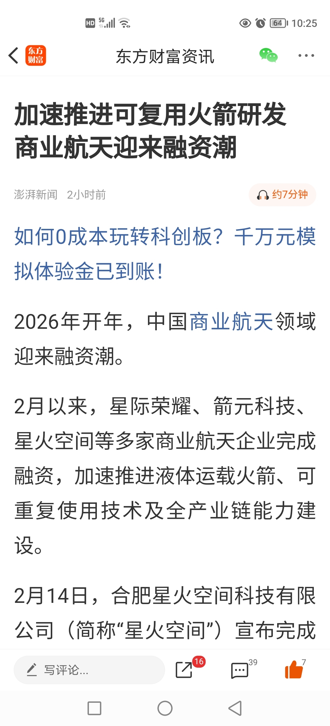 加速推进可复用火箭研发商业航天迎来融资潮