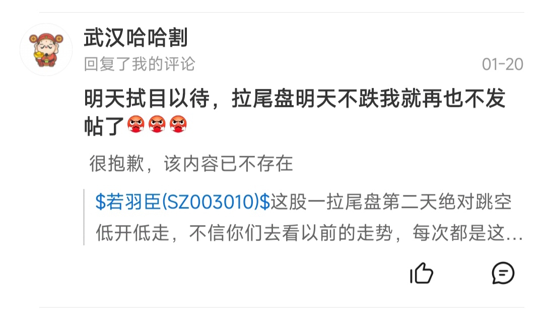 温馨提示: 1.根据《证券法》规定,禁止编造、传播虚假信息或者误导性信息,扰乱证券市场;2.用户在本社区发表的所有资料、言论等仅代表个人观点,与本网站立场无关,不对您构成任何投资建议。用户应基于自己的独立判断,自行决定证券投资并承担相应风险。《东方财富社区管理规定》