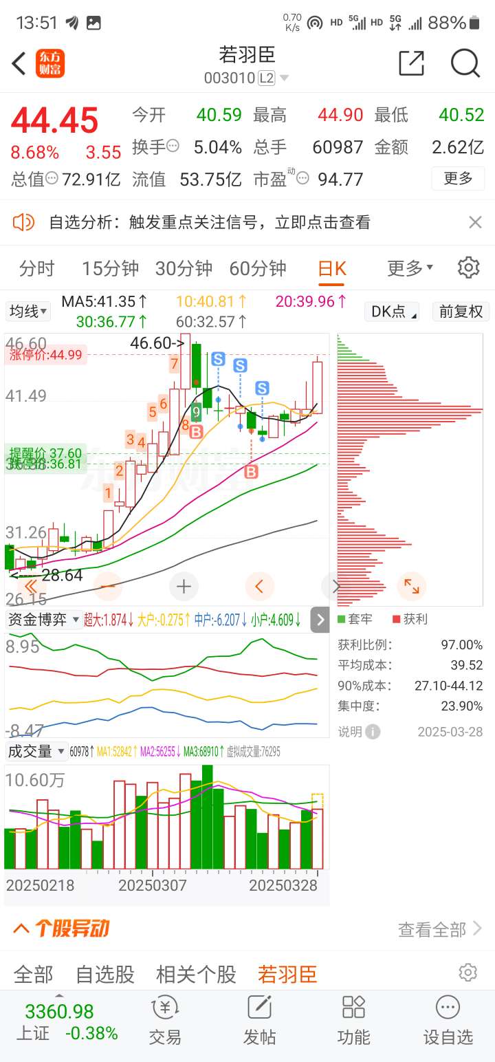 $若羽臣(SZ003010)$ 我承认,我们无缘