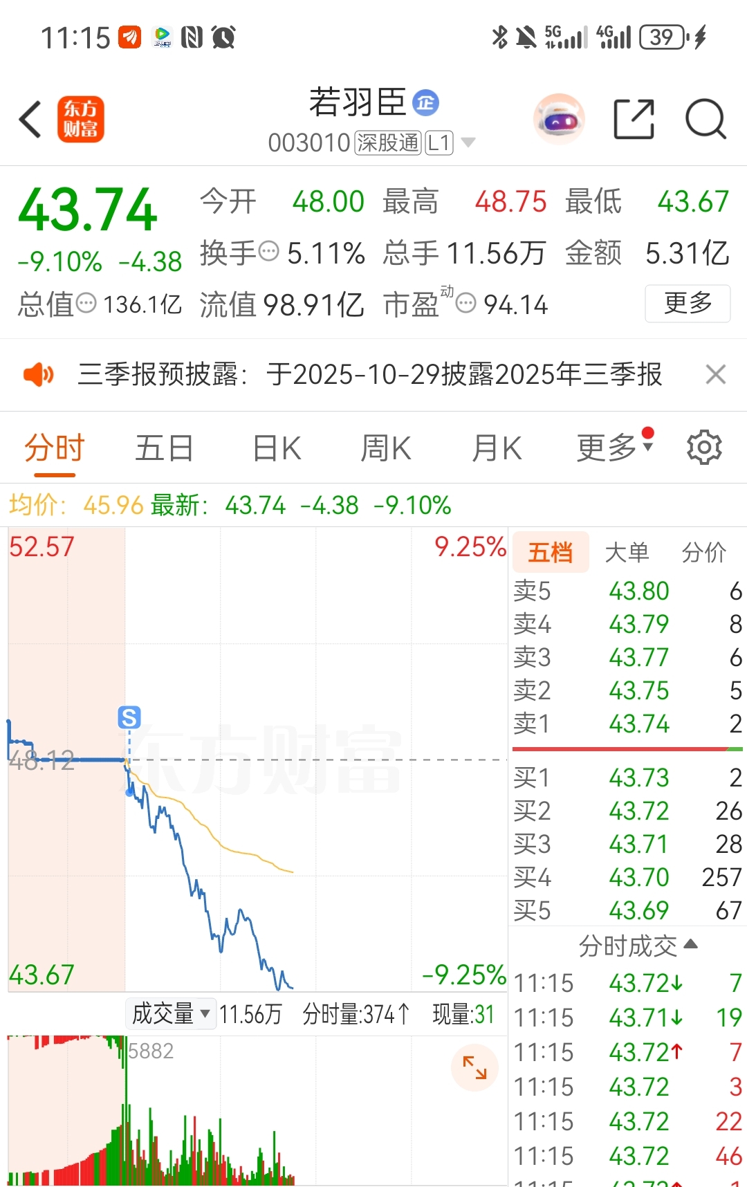 $若羽臣(SZ003010)$ 这波小赚走了,没想到真跌停