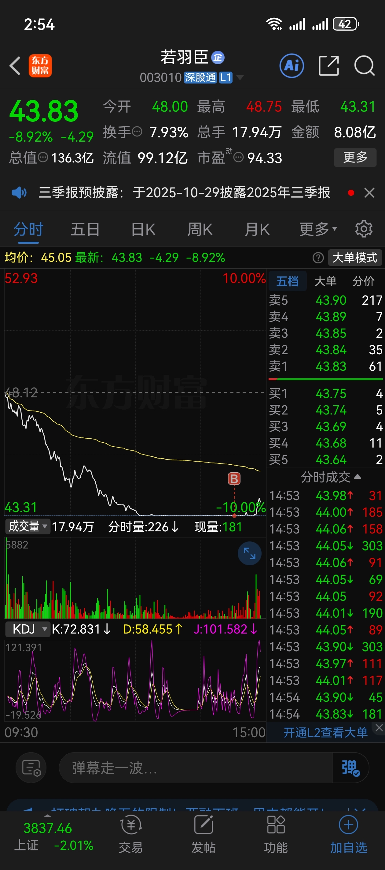 $若羽臣(SZ003010)$ 建仓了,不知道下周能吃肉不