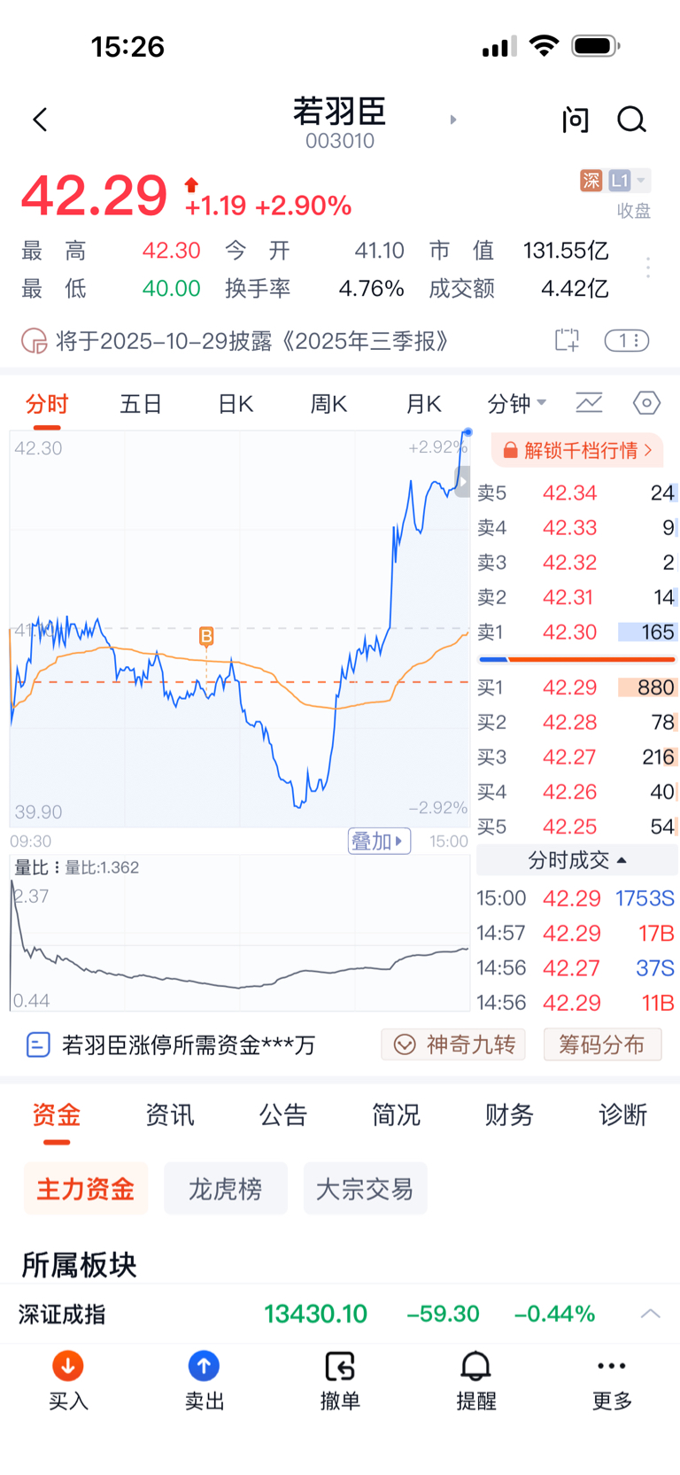 $若羽臣(SZ003010)$ 昨天赚了一个点跑了,今天又回来了吃三个点 这抄底还行吧