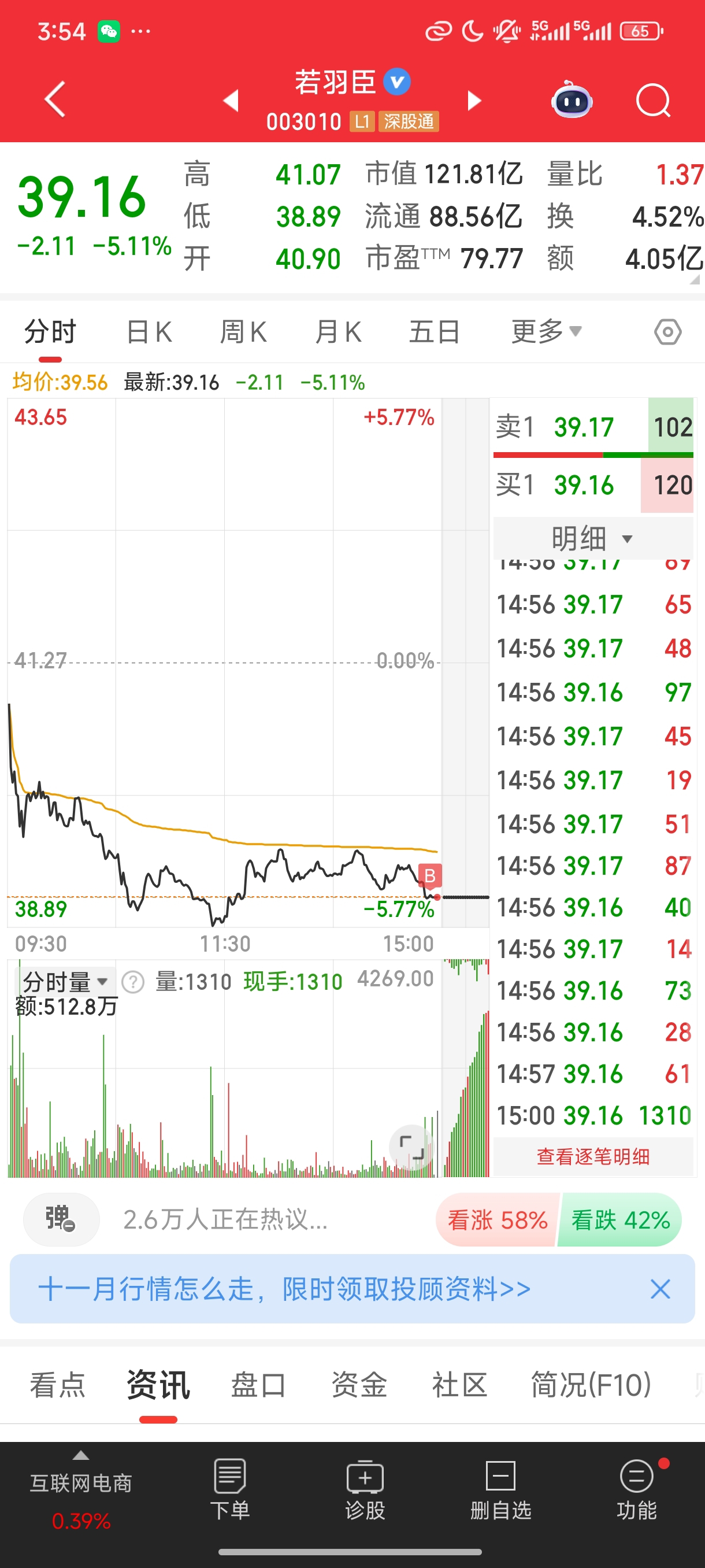 $若羽臣(SZ003010)$ 今天刚建仓的,明天会有反弹吗?