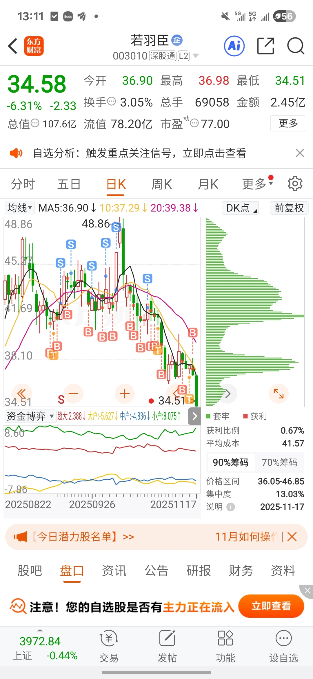 $若羽臣(SZ003010)$ 全是套牢已经废了