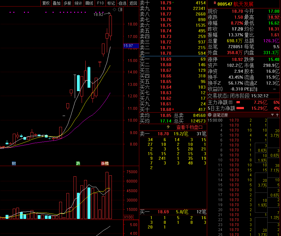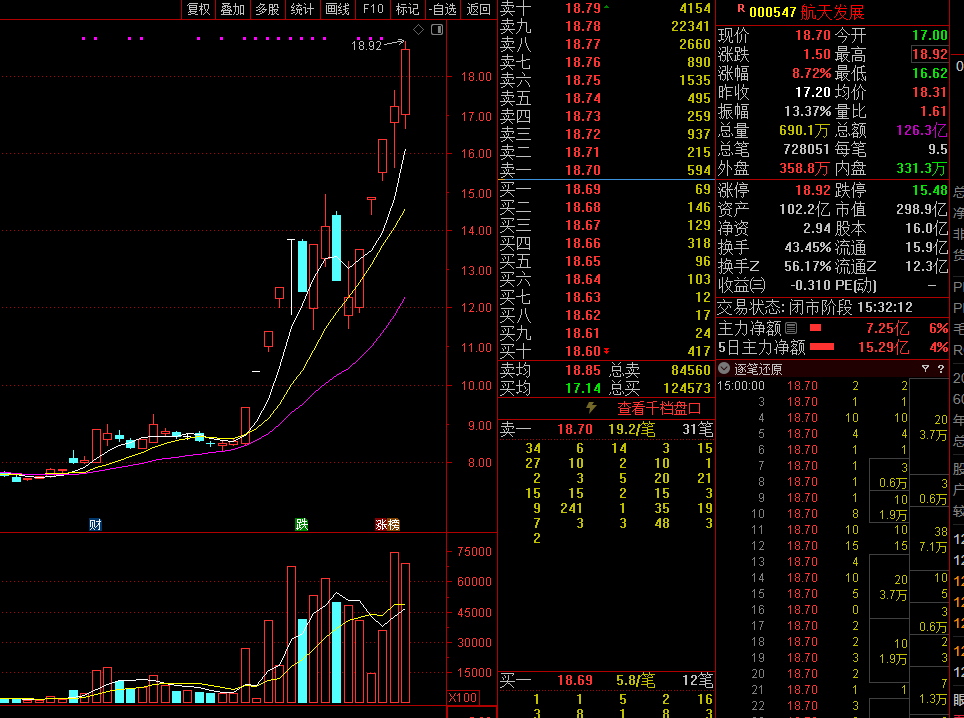 航天发展 000547:这个是打算多观察留一下的,毕竟是板块核心阵眼,后续走趋势概率可能偏大,毕竟成交量比较大,如果有日内小分歧可考虑T一把。