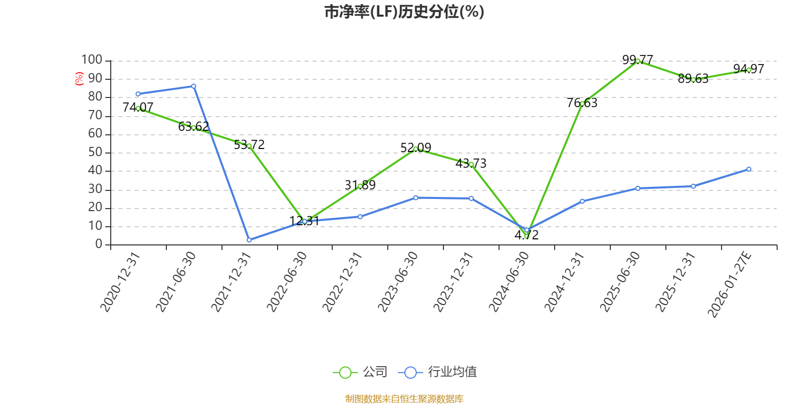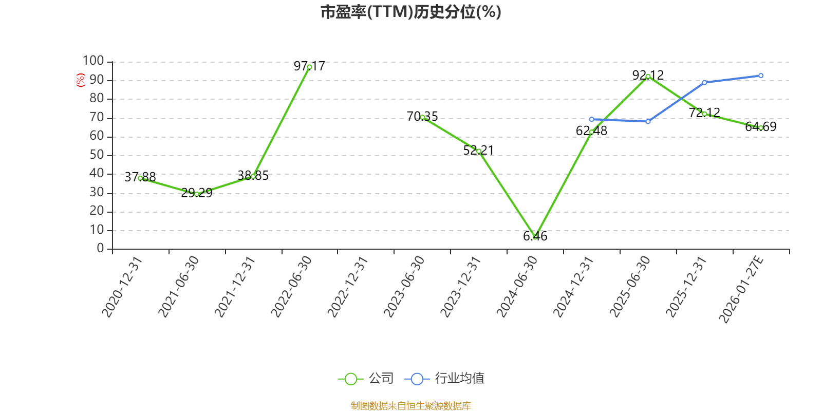 市盈率、市净率为负时,不显示当期分位数,会导致折线图中断。