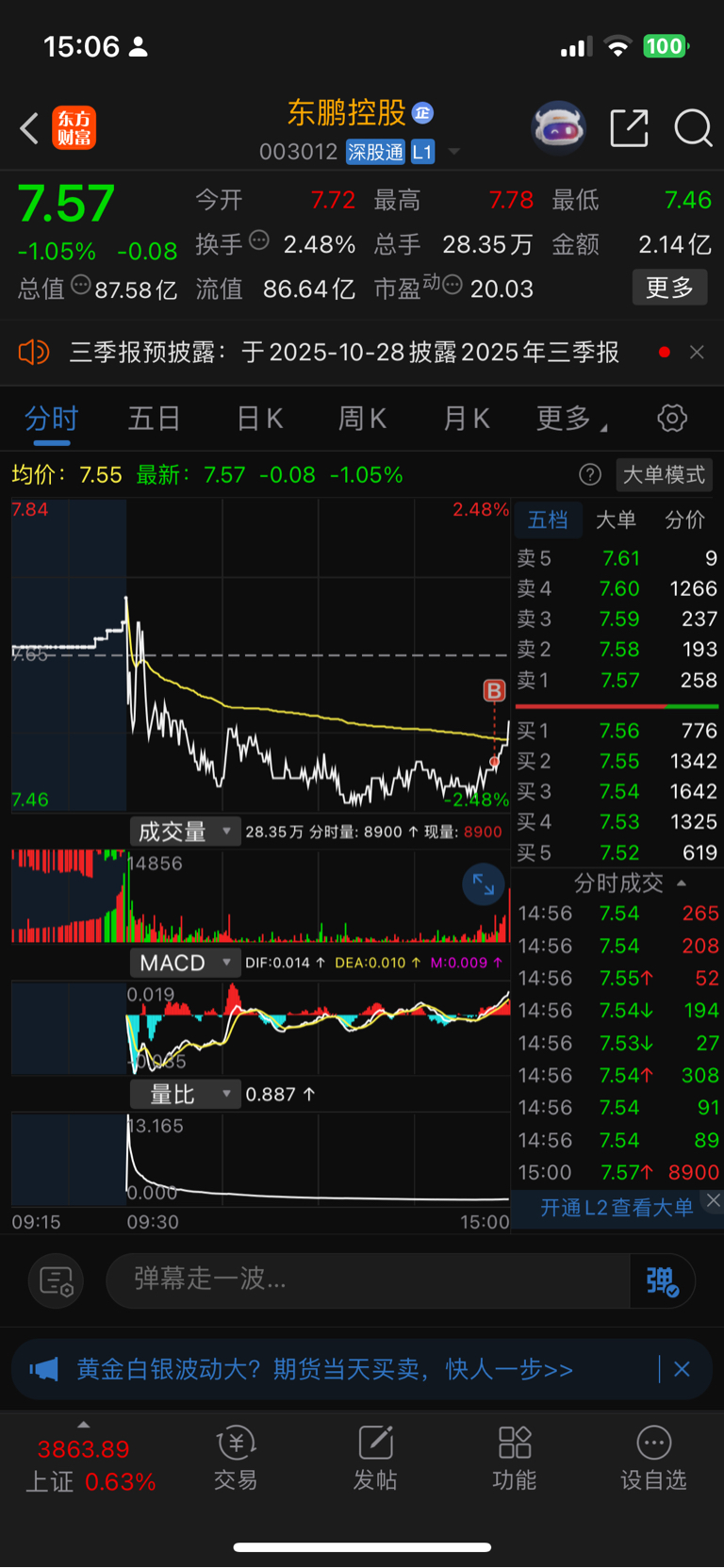 $东鹏控股(SZ003012)$ 买了点