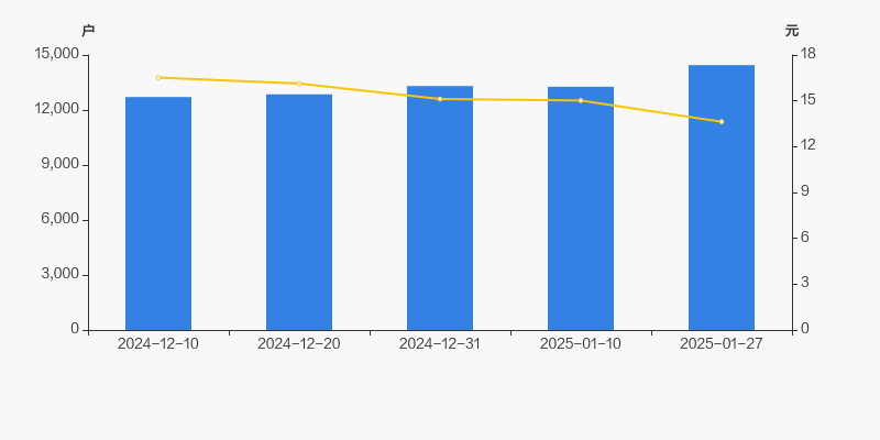 2024年12月10日至今,公司股东户数显著增长,区间涨幅为13.70%。2024年12月10日至2025年1月27日区间股价下降17.49%。
