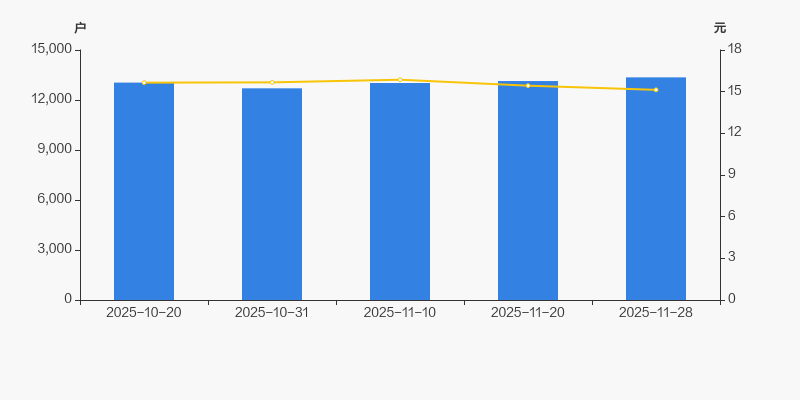 自2025年10月31日以来,公司股东户数连续3期上涨,截至目前增幅为5.17%。2025年10月31日至2025年11月28日区间股价下降3.45%。