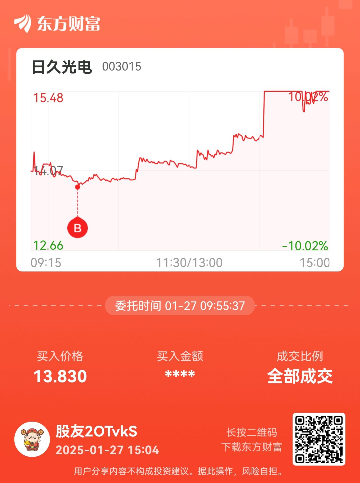 温馨提示: 1.根据《证券法》规定,禁止编造、传播虚假信息或者误导性信息,扰乱证券市场;2.用户在本社区发表的所有资料、言论等仅代表个人观点,与本网站立场无关,不对您构成任何投资建议。用户应基于自己的独立判断,自行决定证券投资并承担相应风险。《东方财富社区管理规定》