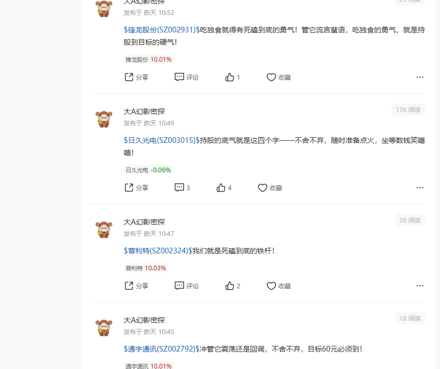 温馨提示: 1.根据《证券法》规定,禁止编造、传播虚假信息或者误导性信息,扰乱证券市场;2.用户在本社区发表的所有资料、言论等仅代表个人观点,与本网站立场无关,不对您构成任何投资建议。用户应基于自己的独立判断,自行决定证券投资并承担相应风险。《东方财富社区管理规定》