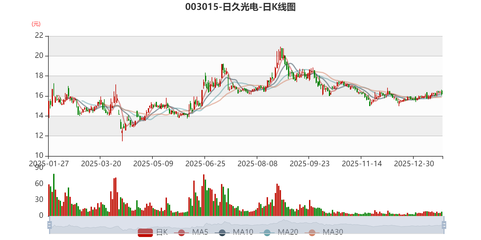 中证智能财讯日久光电(003015)1月26日晚间披露2025年度业绩预告,预计2025年归母净利润9300万元至1.2亿元,同比增长37.83%-77.85%;扣非净利润预计8800万元至1.13亿元,同比增长45.66%-86.21%;基本每股收益0.34元/股-0.44元/股。以1月26日收盘价计算,日久光电目前市盈率(TTM)约为37.97倍-48.99倍,市净率(LF)约4.18倍,市销率(TTM)约7.12倍。