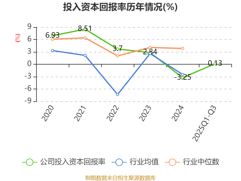 盈利能力方面, 2025年前三季度公司加权平均净资产收益率为0.39%,同比上升1.45个百分点。公司2025年前三季度投入资本回报率为0.13%,较上年同期上升1.7个百分点。