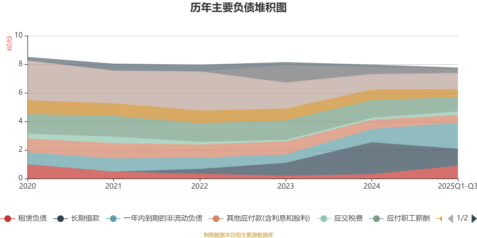 负债重大变化方面,截至2025年三季度末,公司长期借款较上年末减少46.82%,占公司总资产比重下降3.04个百分点;一年内到期的非流动负债较上年末增加96.94%,占公司总资产比重上升2.6个百分点;租赁负债较上年末增加197.06%,占公司总资产比重上升1.71个百分点;应付职工薪酬较上年末减少19.5%,占公司总资产比重下降0.7个百分点。