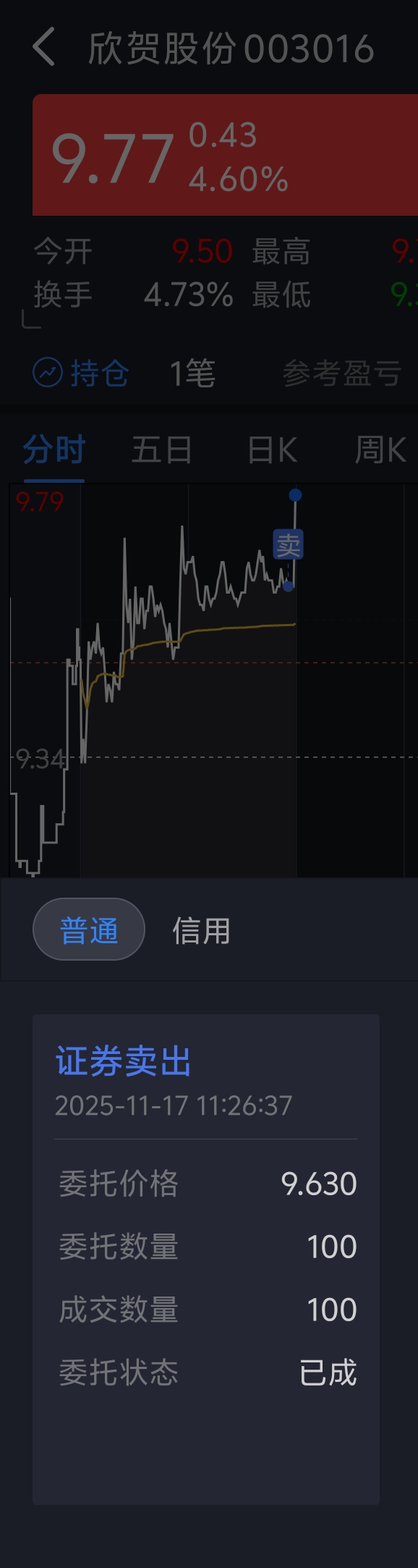 $欣贺股份(SZ003016)$ 压力太大了,卖一手马上拉