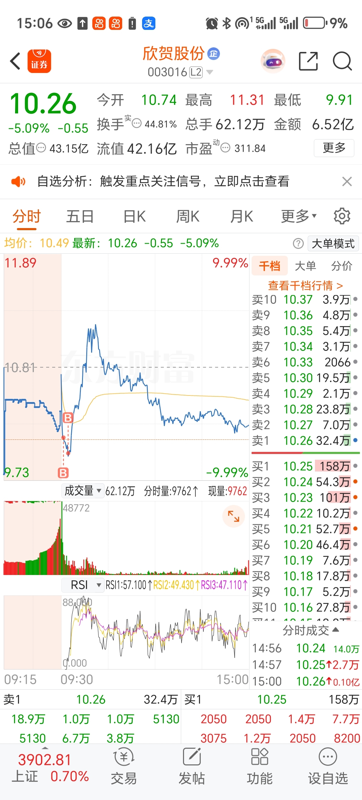 $欣贺股份(SZ003016)$ 主力不错,洗盘充分,嘛了哥笔德
