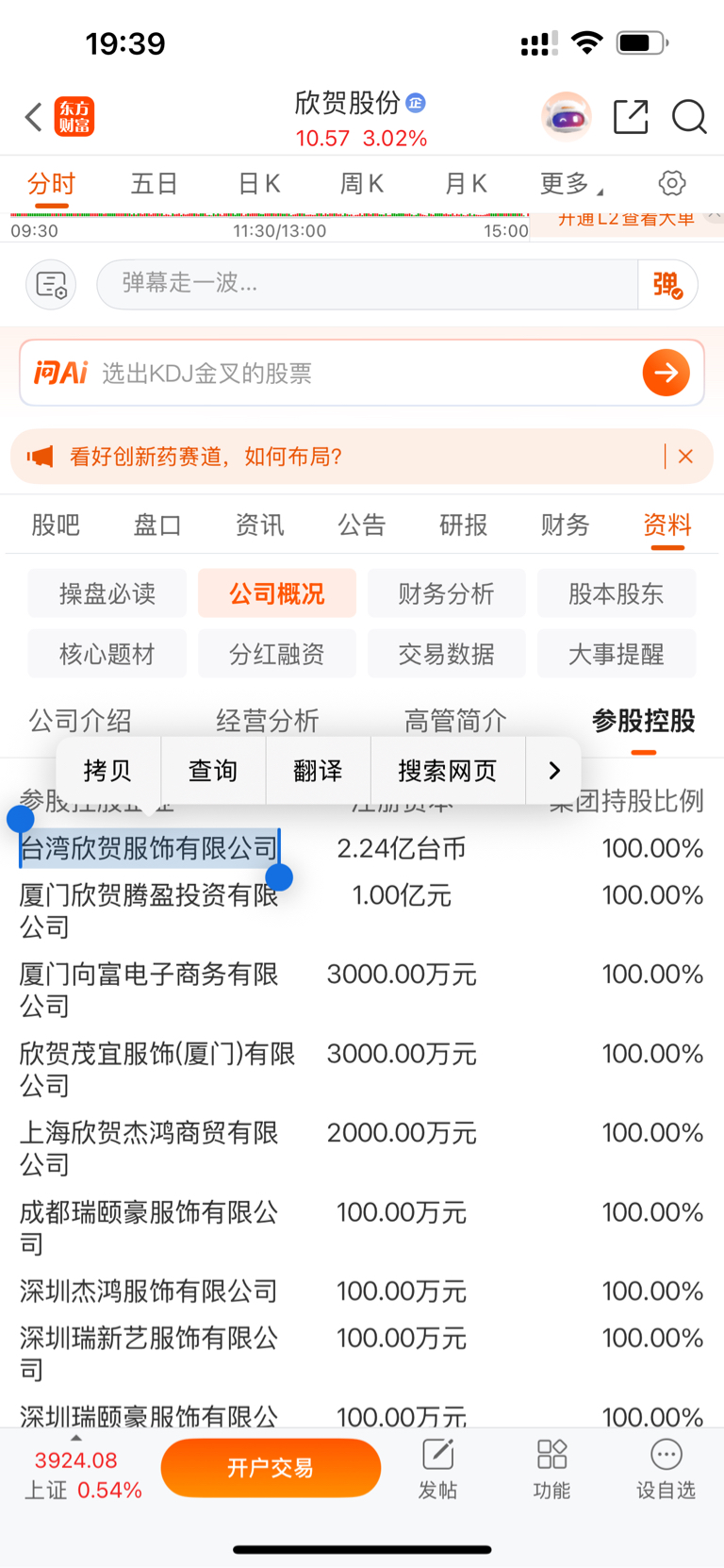 $欣贺股份(SZ003016)$ 今天上午9点多涨停价11.29清仓了欣贺,午盘开盘进了厦工股份,明天卖厦工再回欣贺,欣贺股份毕竟百分之百控股了一家公司:台湾欣贺服饰有限公司。无论咋说还是有潜在利好的